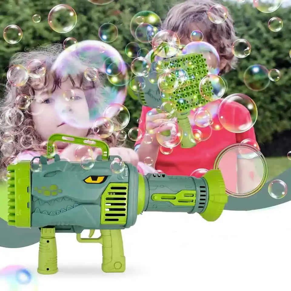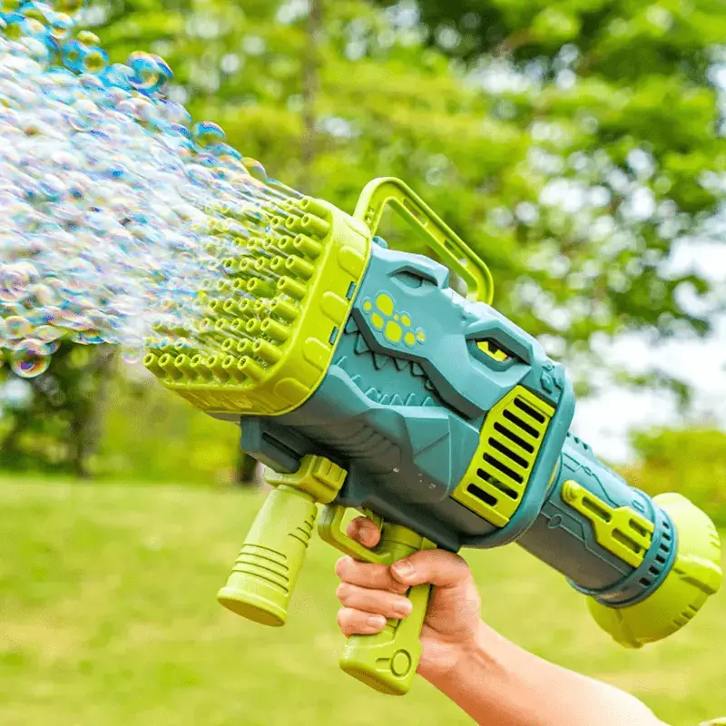 Beleef urenlang speelplezier met dit stoere dinosaurus bellenblaas pistool!