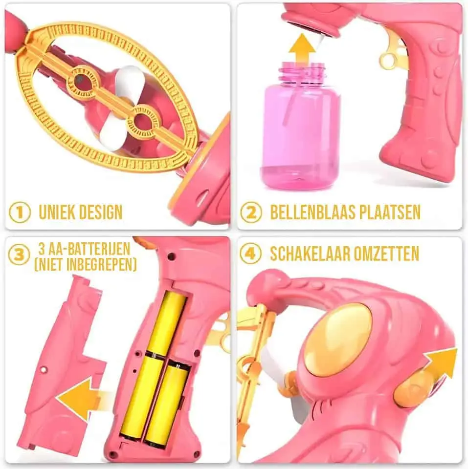 Beleef urenlang speelplezier en blaas grote en kleine bubbels met dit leuke bellenblaas pistool!