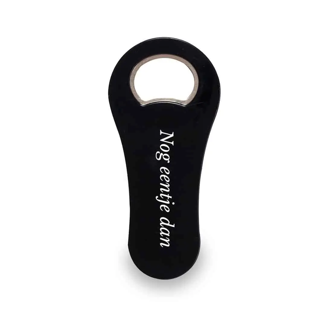 Als je op zoek bent naar een betrouwbare en handige bieropener, dan is deze zwarte bieropener met opdruk perfect voor jou! Deze bieropener is niet alleen stijlvol en modern, maar ook praktisch en gebruiksvriendelijk. De grijze flesopener is gemaakt van hoogwaardig materiaal en heeft een strakke afwerking, waardoor hij er niet alleen goed uitziet, maar ook lang meegaat. Dankzij de vorm van een je ligt de bieropener perfect in de hand en kun je gemakkelijk flessen openen zonder dat je handen pijn doen of slippen. Bovendien is deze bieropener ideaal voor thuisgebruik of voor feestjes en evenementen. Dankzij het compacte formaat past hij gemakkelijk in je broekzak of in een keukenlade, zodat je hem altijd bij de hand hebt wanneer je een biertje wilt openen!