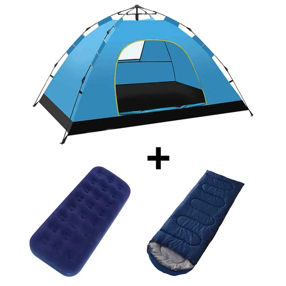 Ga je binnenkort kamperen op een festivalcamping? Dan komt deze complete eenpersoons kampeerset goed van pas! De set bestaat uit een tent, luchtbed en slaapzak.Â