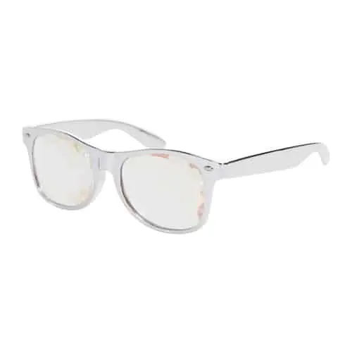Deze caleidoscoop bril brengt je in de ultieme droomwereld en geeft je een nog vetter trip effect dan de gewone spacebril! Deze uitvoering heeft klassiek een zilveren frame en groot bloem effect.