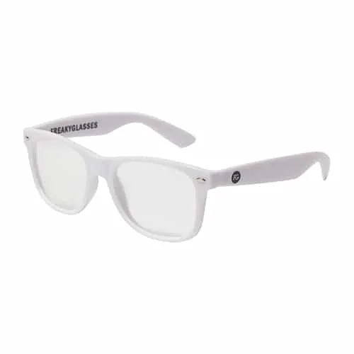 <p>Spacebril Deluxe met wit montuur en spiraal diffractie effect.</p>