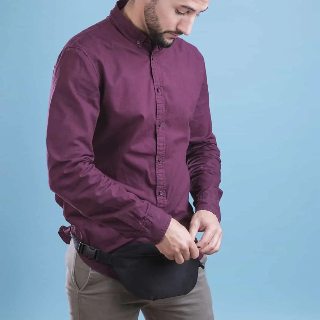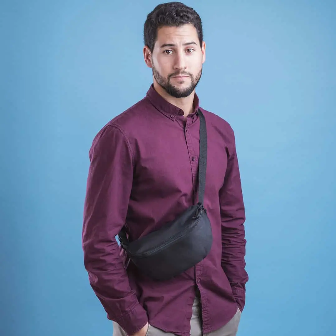 Basic zwarte fanny pack met verstelbare band.