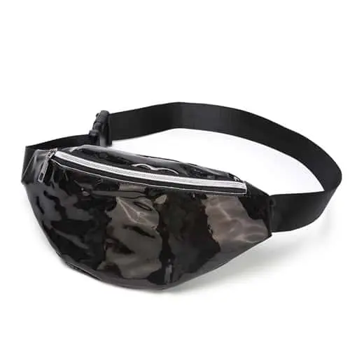 Fanny pack met zwart glanzend effect.