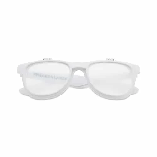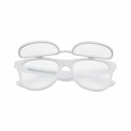 <p>Witte Freaky Glasses flipstyle met heldere lens en spacebril effect. Klepje open is heldere nerdbril, klepje dicht is met spacebril effect.</p>