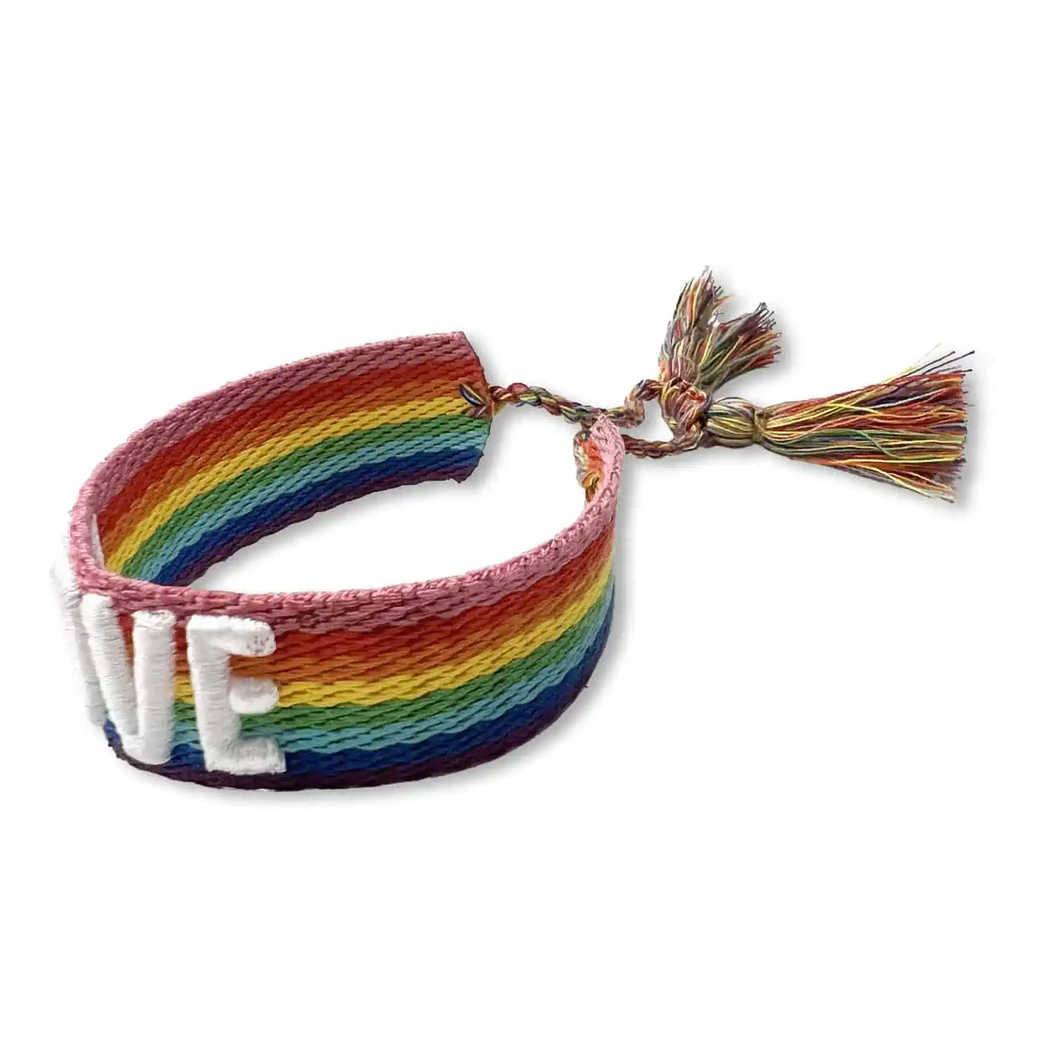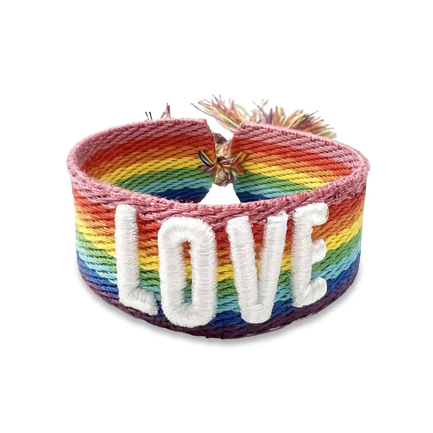 Dit armbandje is gemaakt van stevig gevlochten katoen en is leuk om te dragen tijdens de jaarlijkse Coming Out day of tijdens de pride! Het verstelbare regenboogarmbandje bevat de geborduurde tekst ‘Love’ en is zeer geschikt om een een statement te maken of een leuk accessoire om te dragen naar een festival of feestje!