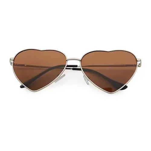 Hartjes zonnebril met zilver frame en bruine lenzen.