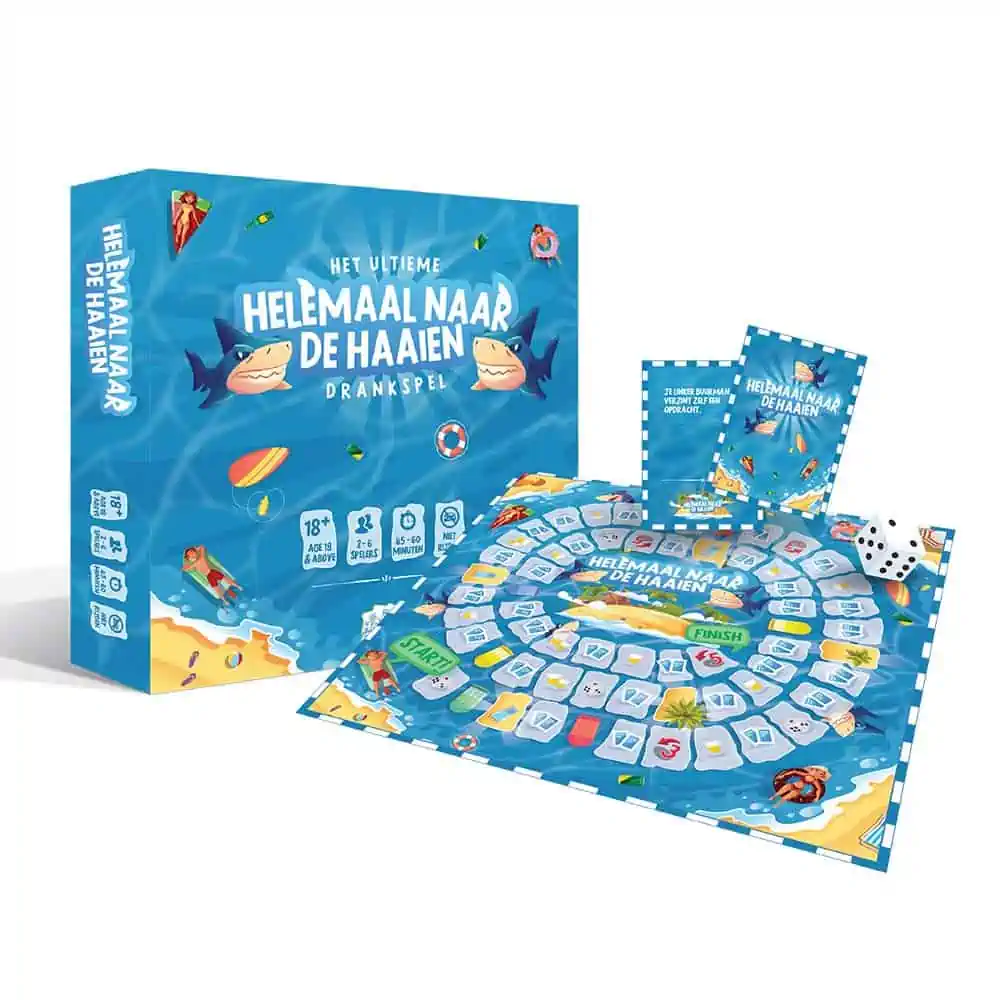 Ga helemaal naar de haaien met 52 unieke opdrachten. Het ultieme drankspel dat zorgt voor een legendarische avond!