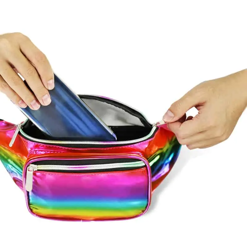 Neem je spulletjes gemakkelijk mee naar een festival in dit stijlvolle, holografische heuptasje!