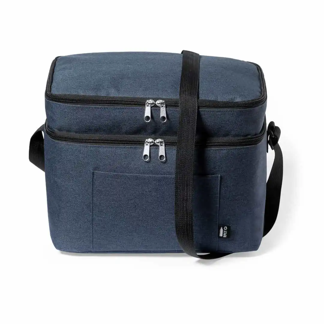 600D RPET koeltas met 2 compartimenten en PEVA voering. Het isolatiemateriaal is gemaakt van PEVA. Deze tas is geweldig voor een dagje strand, een picknick of een vakantie. Doordat hij twee aparte vakken heeft, kun je verschillende items koel bewaren en heb je gemakkelijk toegang tot beide. Plaats een paar drankjes op de bodem en wat eten op de bovenkant en je bent klaar om op pad te gaan. In de tas is ruimte voor maximaal 6 blikjes drinken. De tas heeft ook een voorvak om kleinere spullen in op te bergen. Door de verstelbare schouderband is deze koeltas gemakkelijk mee te nemen, ook als hij helemaal vol is.
