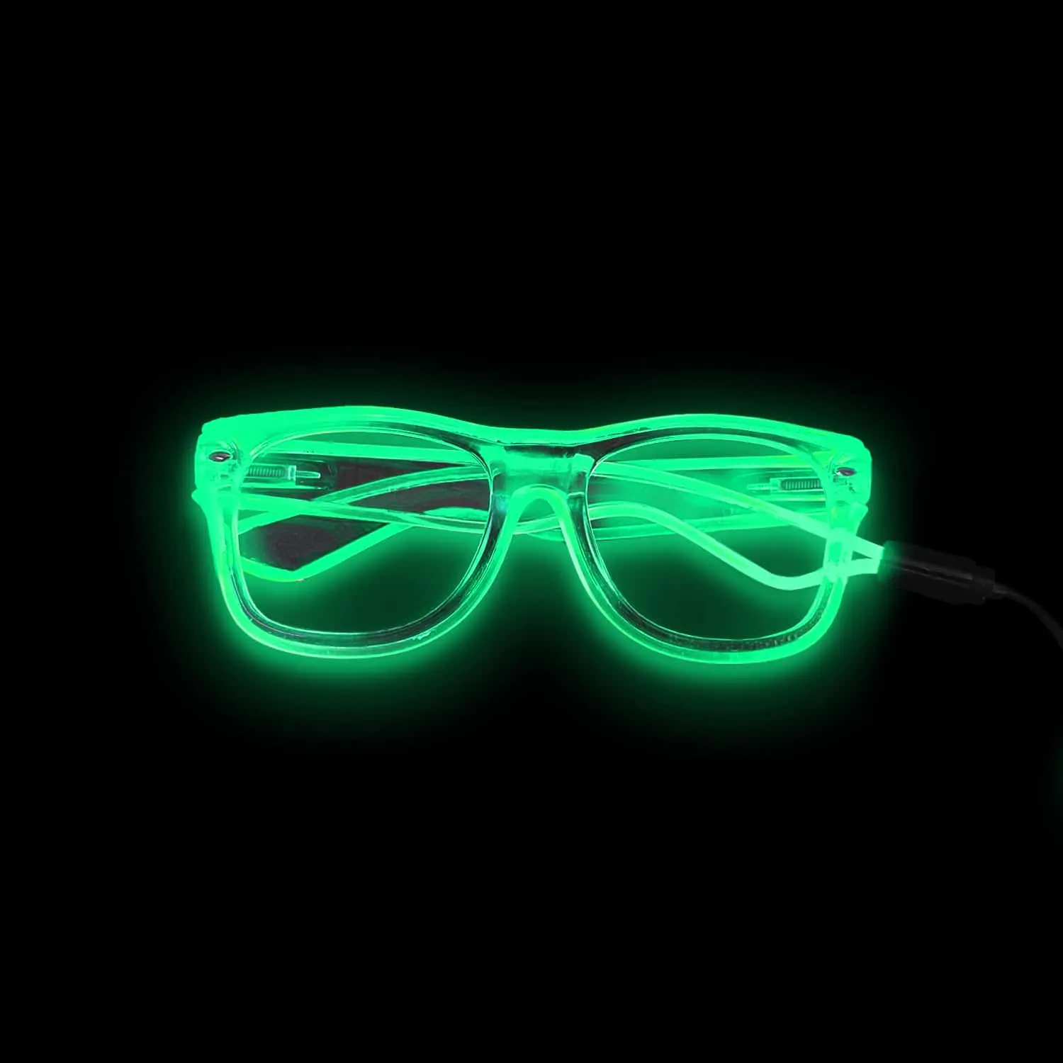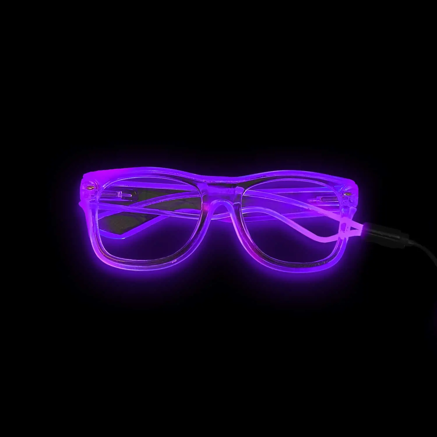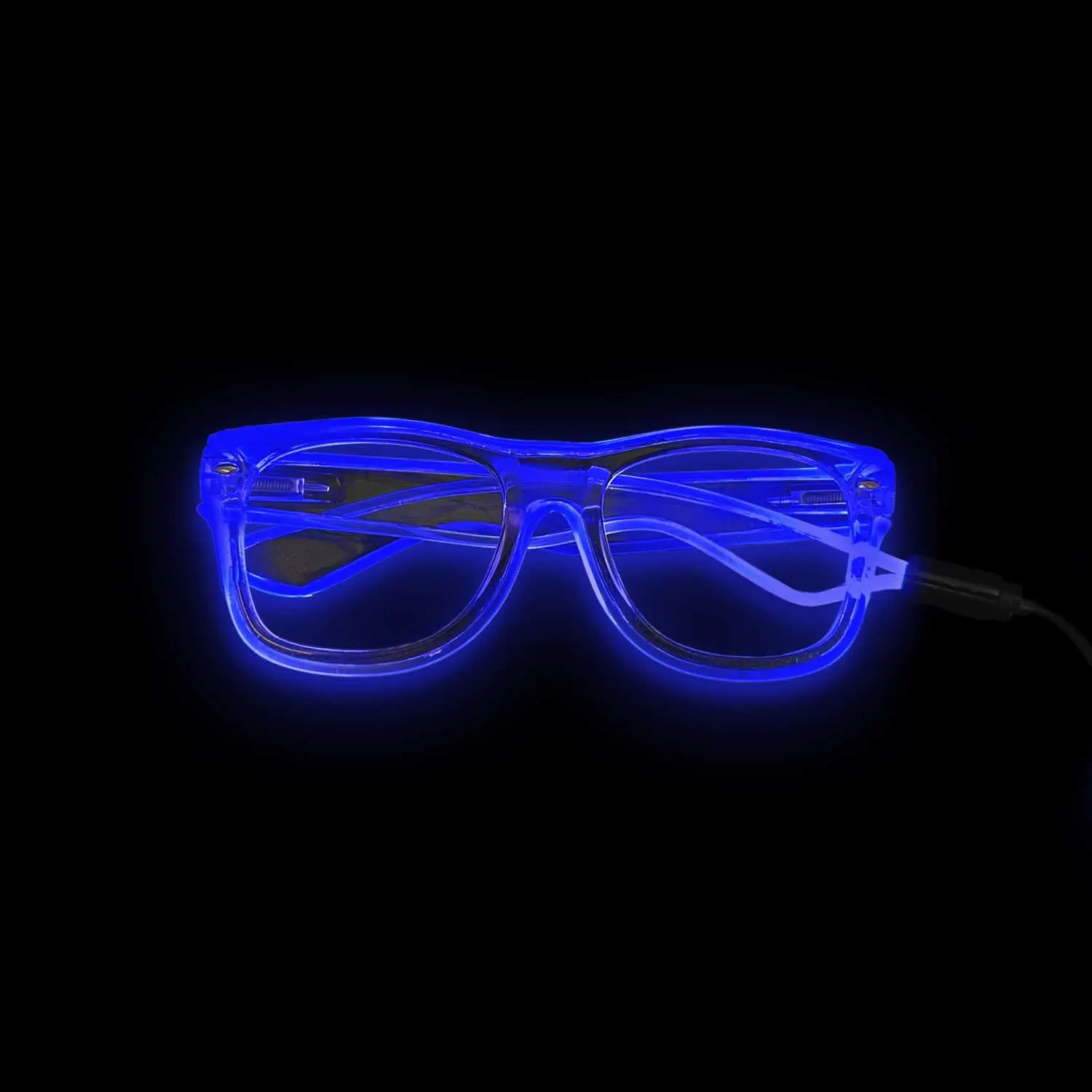 Shine in the dark met deze transparante LED bril! Deze klassieke lichtgevende bril is al jaren een begrip op festivals. Deze vernieuwde versie kan ingesteld worden in verschillende kleuren en knipperstanden.