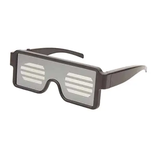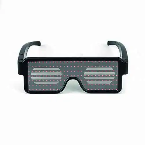 Deze lichtgevende bril is voorzien van een display die helder licht geven en waarmee 11 verschillende patronen kunnen worden ingesteld.