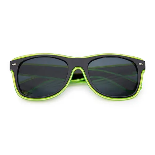 Shine in the dark! Deze zwarte LED bril heeft een UV-400 zonnebril lens en gele EL wire NEON.