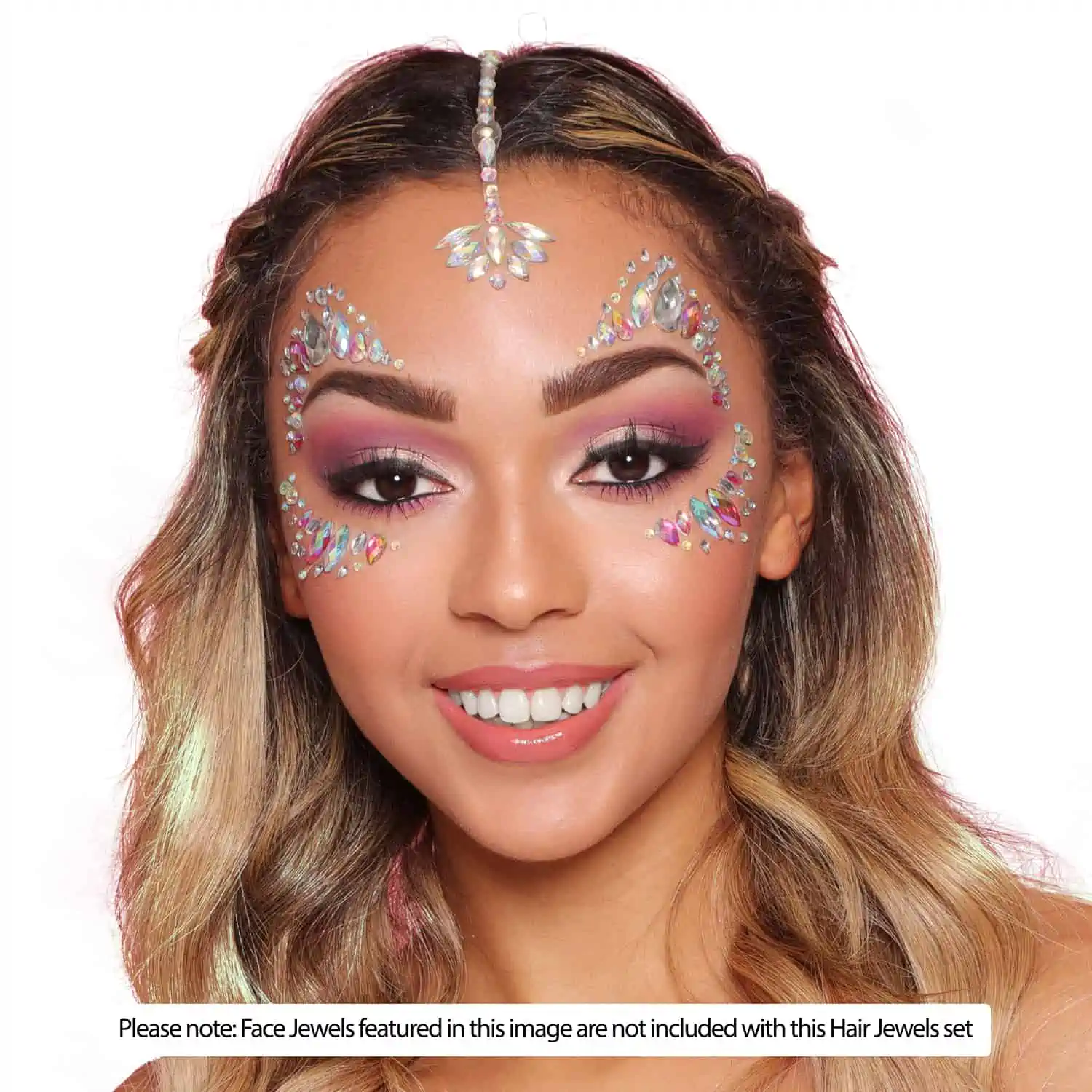 Schitter als een Koningin met deze Crown Jewels Hair Root Jewels. Gemaakt van kleurrijke kristallen steentjes en acryl diamanten. Deze veganistische en dierproefvrije juwelen voegen een unieke en oogverblindende look toe aan alle haartypes. De gezichtsjuwelen zijn zowel gemakkelijk aan te brengen als te verwijderen en kunnen eventueel opnieuw gebruikt worden met de Glitter Fix Gel na het reinigen van de steentjes. Het perfecte accessoire om voor een onvergetelijke festival, carnaval of een bijzondere gelegenheid! Perfect te combineren met de Crown Jewels Face Jewels.