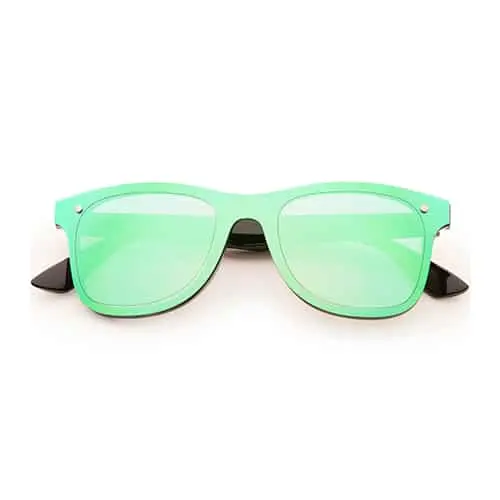 Party zonnebril met groene spiegel lenzen.