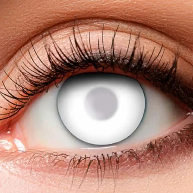 Maak jouw Festival-, Halloween- of carnavalslook helemaal af met deze leuke Geest partylenzen! Deze professionele partylenzen zonder sterkte gebruik je op dezelfde manier als normale contactlenzen, echter geven deze lenzen een verassend effect in je ogen. Deze lenzen zijn wit en hiermee maak je, je griezelige geest of zombie look helemaal af! De partylenzen zijn zachte 3-maandslenzen en kun je na opening 3 maanden gebruiken in de daarvoor geschikte lenzenvloeistof. De partylenzen zijn steriel verpakt in een koker met speciale lenzenvloeistof. Lees voor gebruik eerst de bijgevoegde gebruiksaanwijzing.