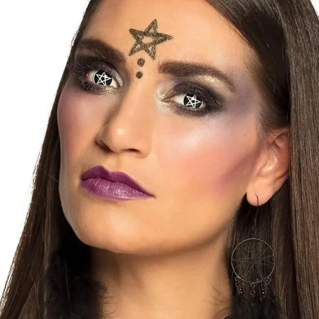 Maak jouw Festival-, Halloween- of carnavalslook helemaal af met deze leuke Pentagram partylenzen! Deze professionele partylenzen zonder sterkte gebruik je op dezelfde manier als normale contactlenzen, echter geven deze lenzen een verassend effect in je ogen. Deze lenzen met pentagram maken jouw griezelige look helemaal af! De partylenzen zijn zachte 3-maandslenzen en kun je na opening 3 maanden gebruiken in de daarvoor geschikte lenzenvloeistof. De partylenzen zijn steriel verpakt in een koker met speciale lenzenvloeistof. Lees voor gebruik eerst de bijgevoegde gebruiksaanwijzing.