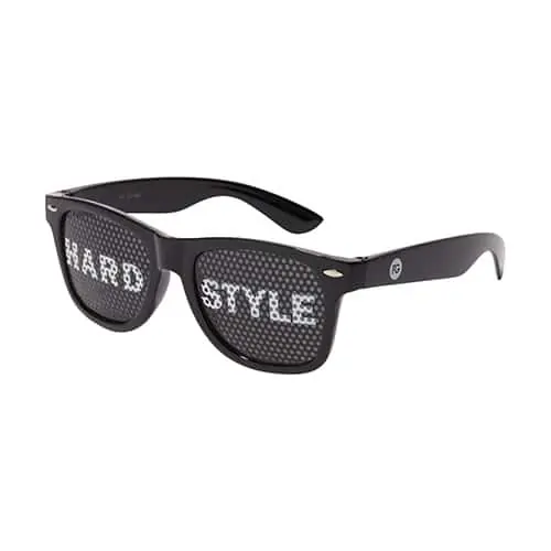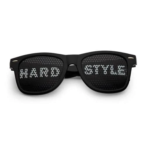 <p>Zwarte of witte pinhole zonnebril met Hardstyle design.</p>