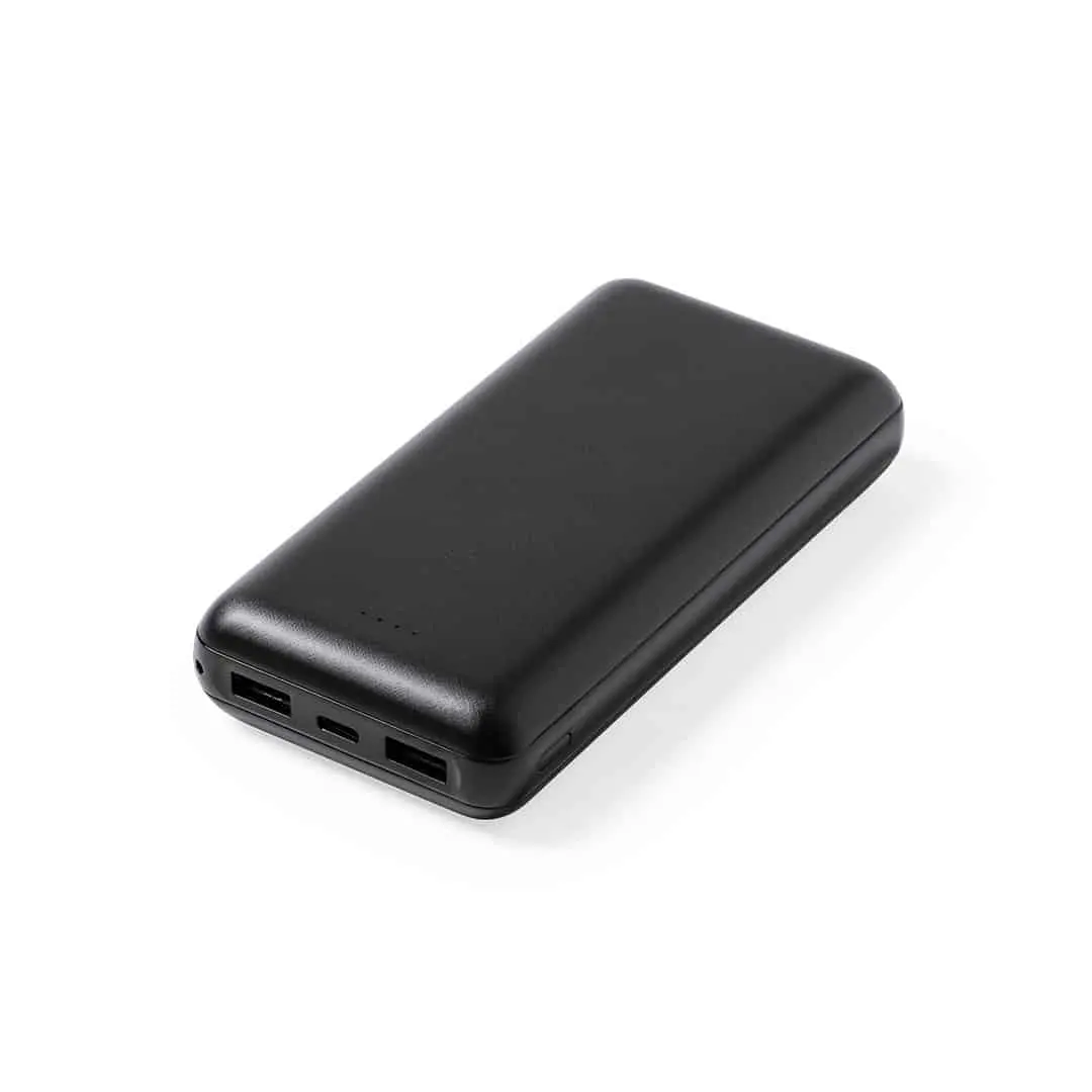 Je kunt 2 telefoons tegelijkertijd opladen met deze zwarte 20.000 mAh powerbank!