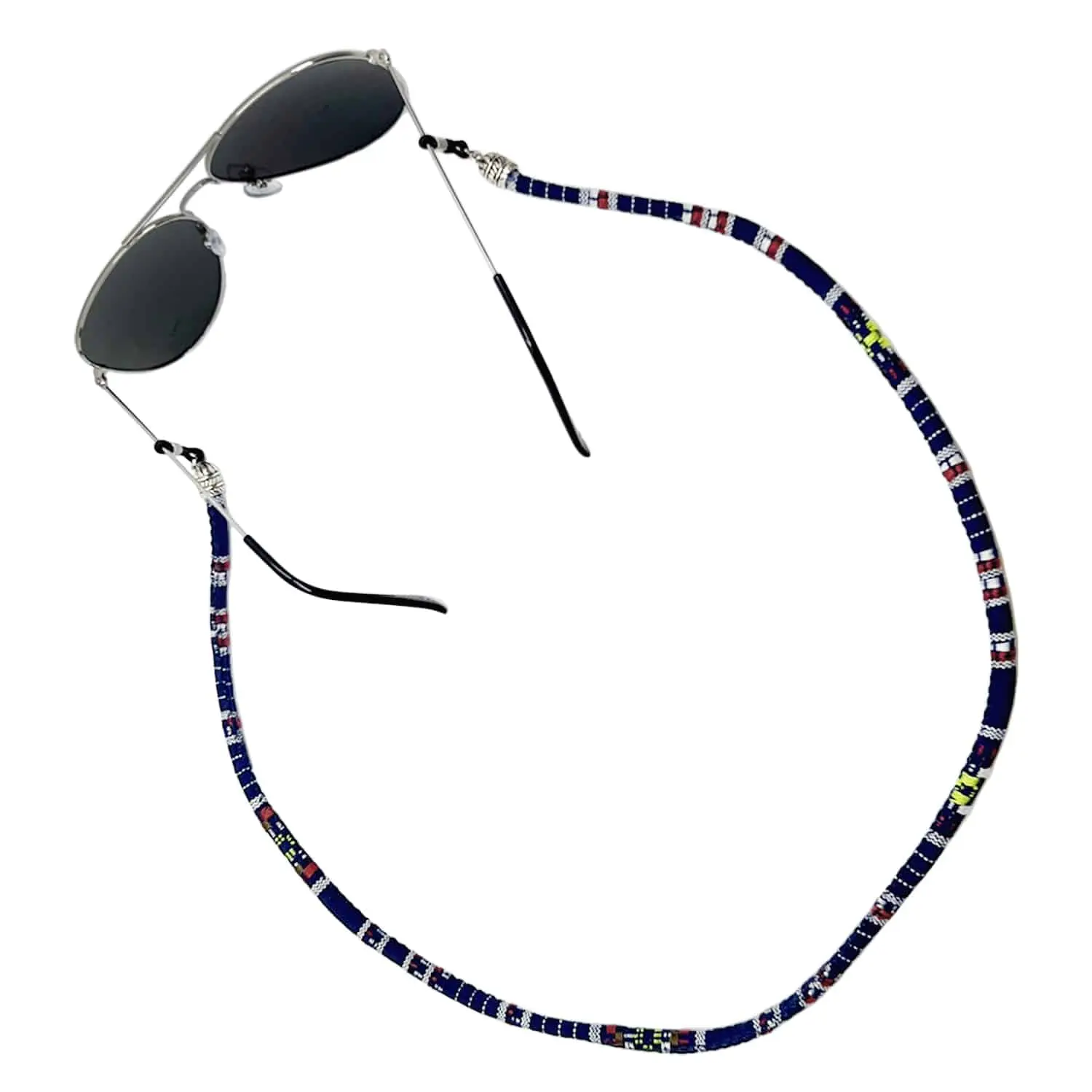 Raak jij wel eens je bril of zonnebril kwijt? Dan kan een brillenkoordje de oplossing zijn! Als echte festival fanaat kun je natuurlijk niet zonder een festival zonnebril, partybril of gekke bril. Met dit kleurrijke brillenkoordje met leuke print geef je jouw zonnebril een extra versiering en blijft deze veilig om je nek hangen. Het koordje is niet alleen functioneel, maar is ook een leuke toevoeging aan je outfit! Het brillenkoord is gemaakt van polyester en kan gemakkelijk aan de brillenpootjes worden bevestigd met de siliconen verstelbare bevestigingsringetjes. Zo heb je jouw bril altijd bj de hand. Het koordje is geschikt om te gebruiken voor jouw normale bril en andere soorten brillen. Een handig en trendy accessoire om je bril veilig om je nek te hangen!