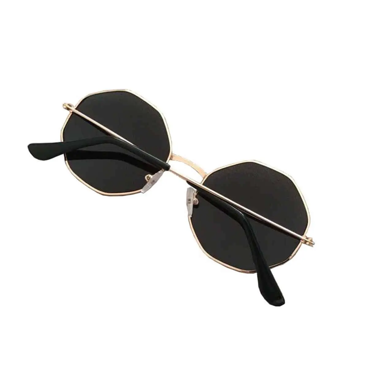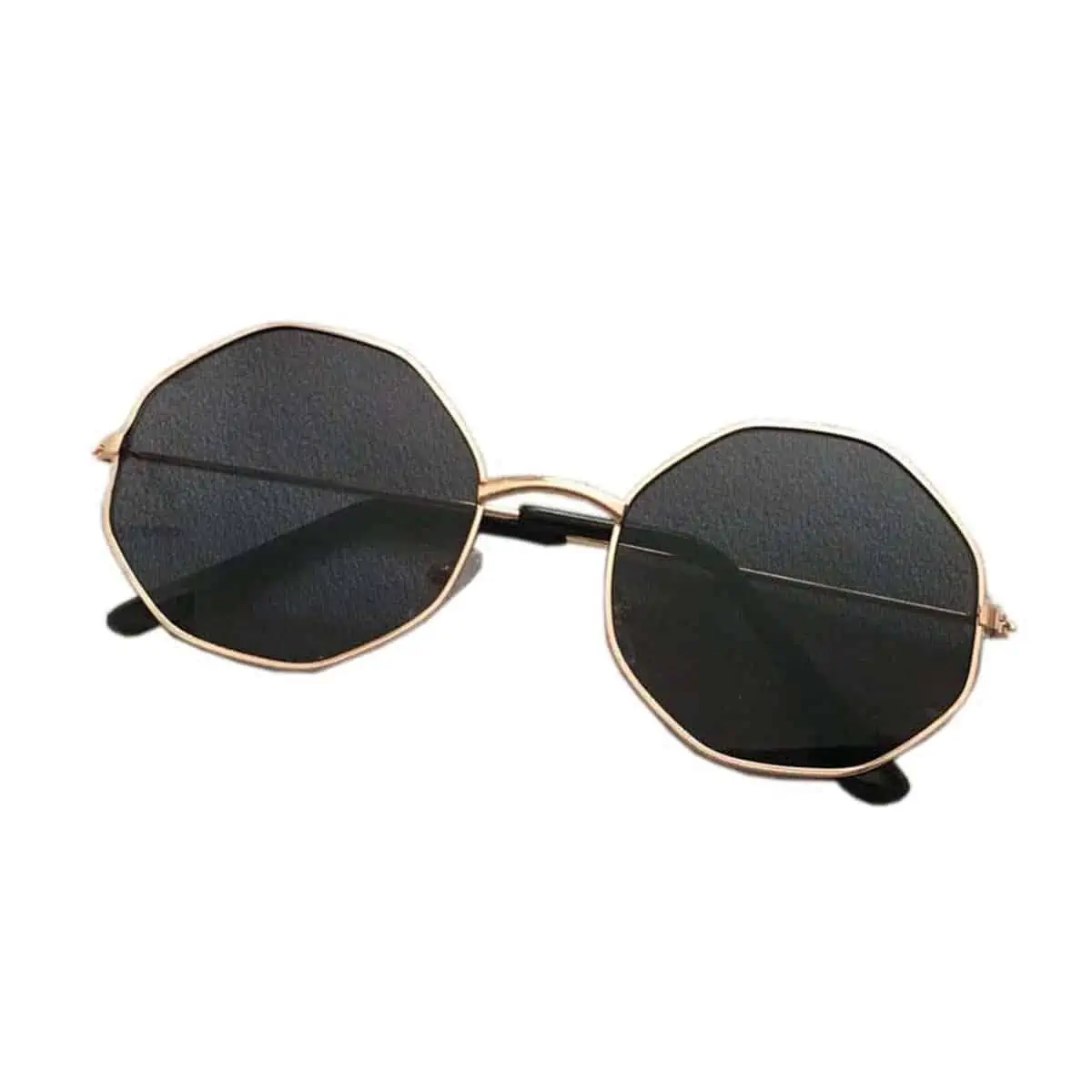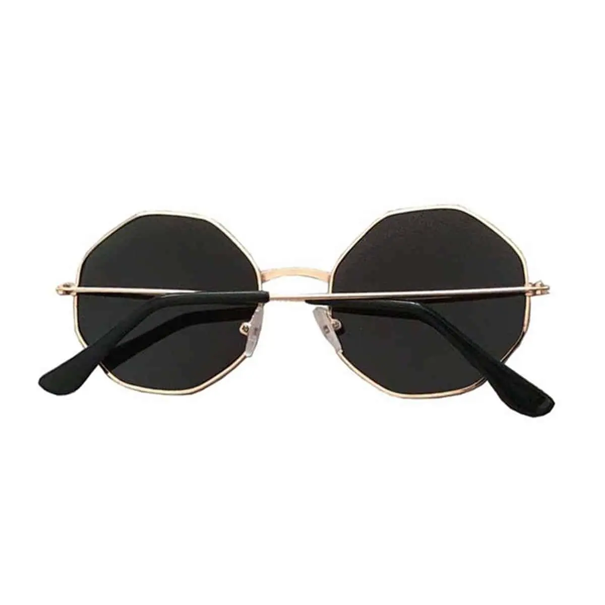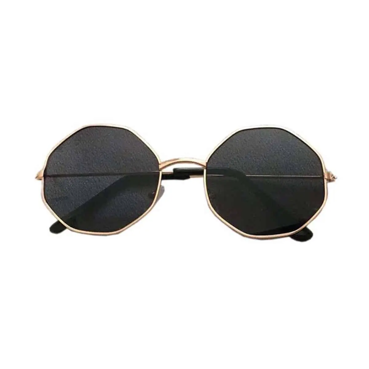 Ronde hoeken zonnebril goud met zwarte lenzen.