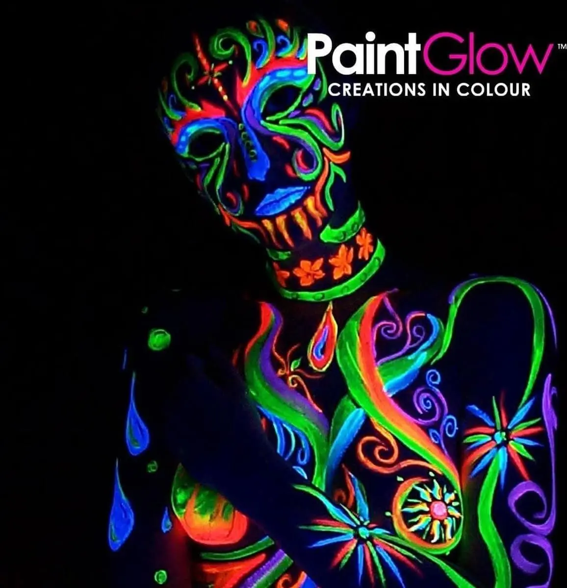 Maak jouw festival look helemaal af met deze UV Face & Body paint van PaintGlow! De verf is geschikt voor op je gezicht en lichaam en is gemakkelijk aan te brengen met je vingers, een sponsje of met een kwastje. Doordat de verf dik en romig is, droogt deze snel op en blijft heel de dag of nacht prachtig zitten. De verf is volledig dekkend en is leuk om te gebruiken op een festival, themafeestje of een ander evenement!