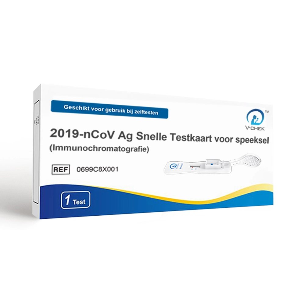V-chek lollypop zelftesten kopen? Deze speekseltesten testen zijn CE gekeurd en geschikt voor thuisgebruik. Deze zelftesten werken met een lepeltje die in de mond gehouden moet worden dus geen pijnlijk of raar gevoel in de neus. De antigeen test is gemakkelijk te gebruiken als zelftest.