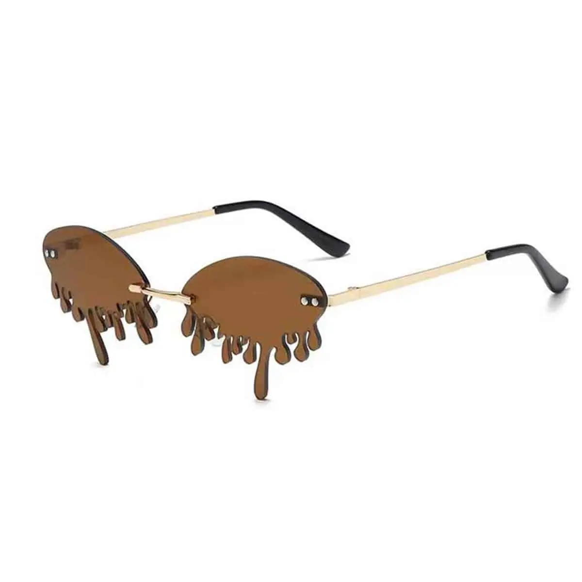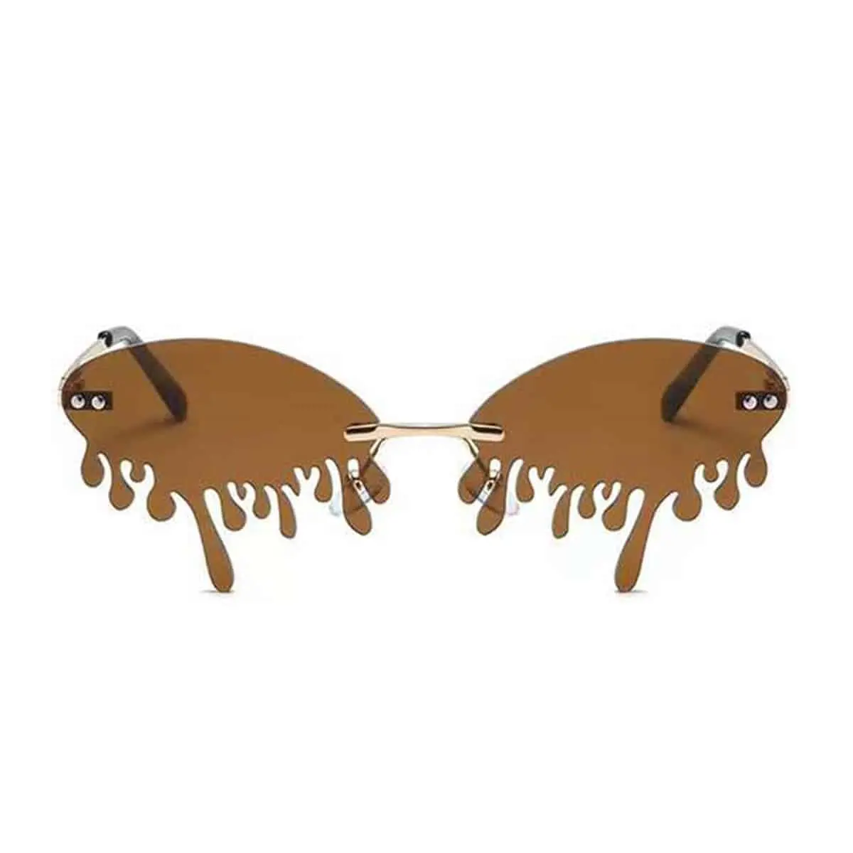 Vlammen zonnebril druppels met chroom frame en bruine lenzen.