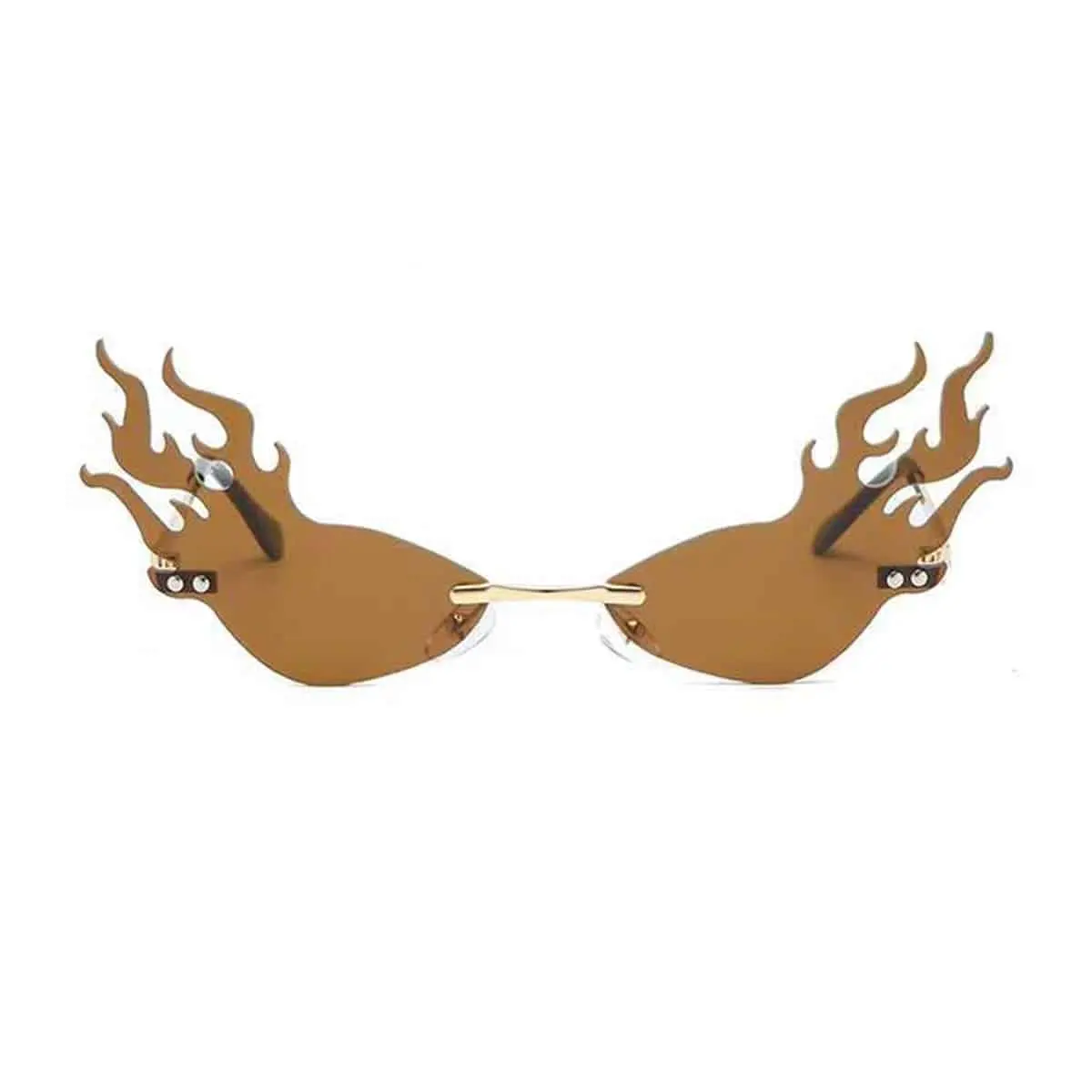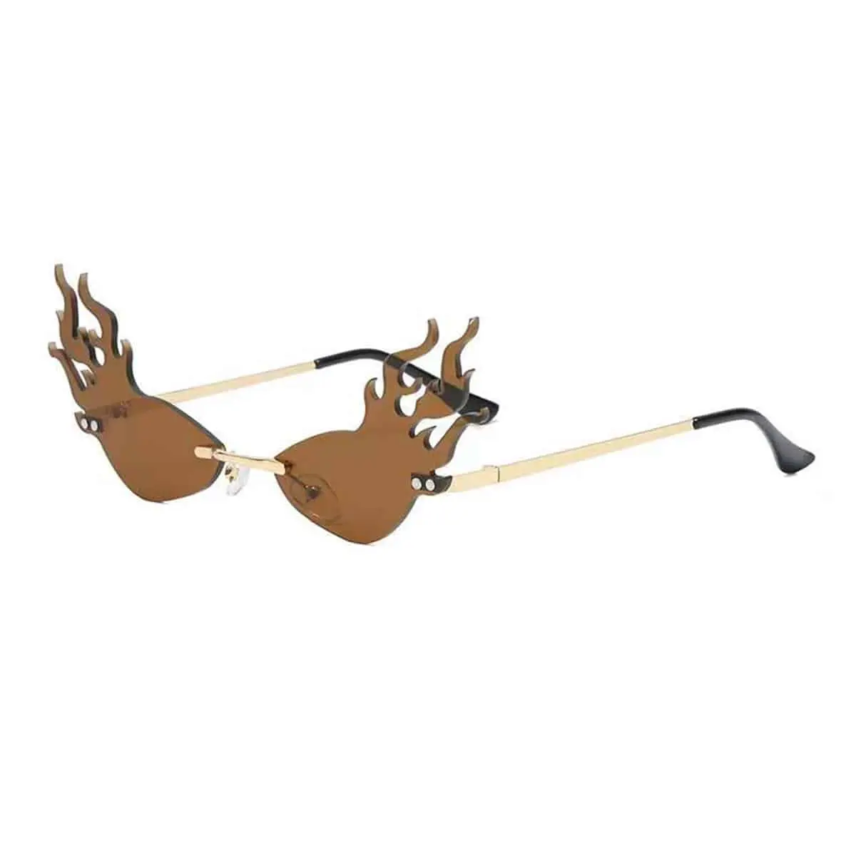 Vlammen zonnebril festival met chroom frame en bruine lenzen.