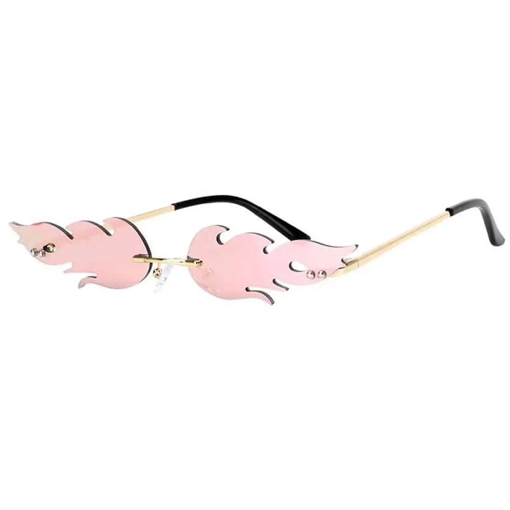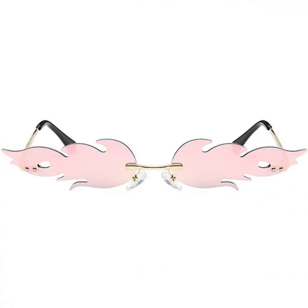 Vlammen zonnebril met chroom frame en roze lenzen.