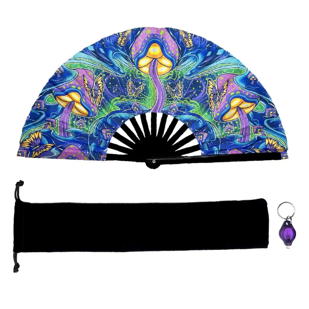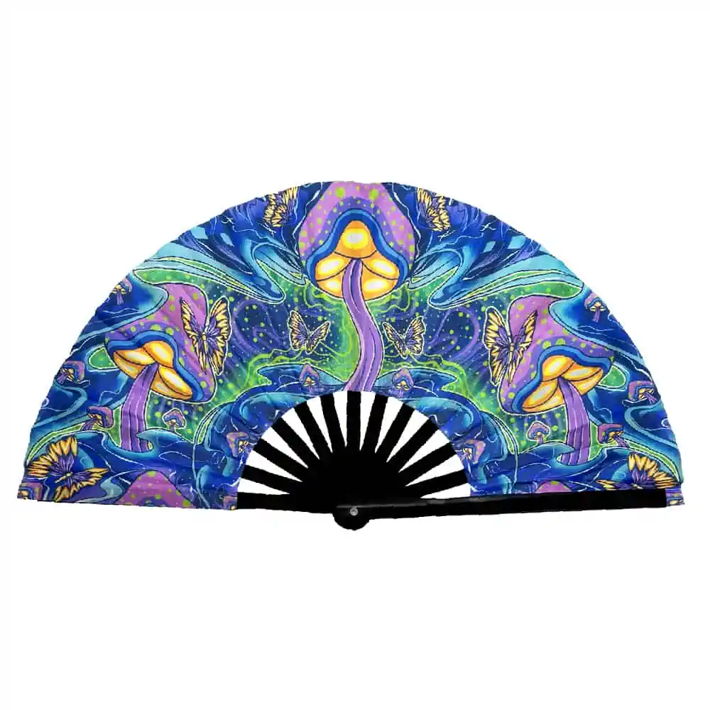Op een warme festivaldag is een handwaaier onmisbaar! Lekker even afkoelen en de warmte van je afwaaien? Dan is deze XXL handwaaier met multicolor paddenstoel- en vlinderprint perfect voor jou! De Spaanse waaier is gemaakt van kunststof met een polyester doek en is extra stevig. Met een breedte van 62 cm en een hoogte van 32 cm is deze waaier extra groot en zal dus voor nog meer verkoeling zorgen!