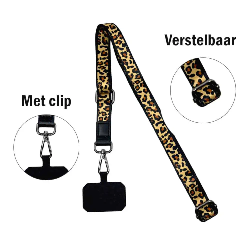 Dit universele telefoonkoord met leuke panter print past op iedere telefoon in combinatie met een hoesje.